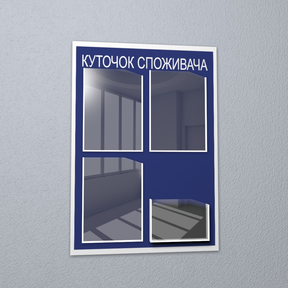 Куточок споживача компактний настінний на 4 кишені інформаційний стенд синій